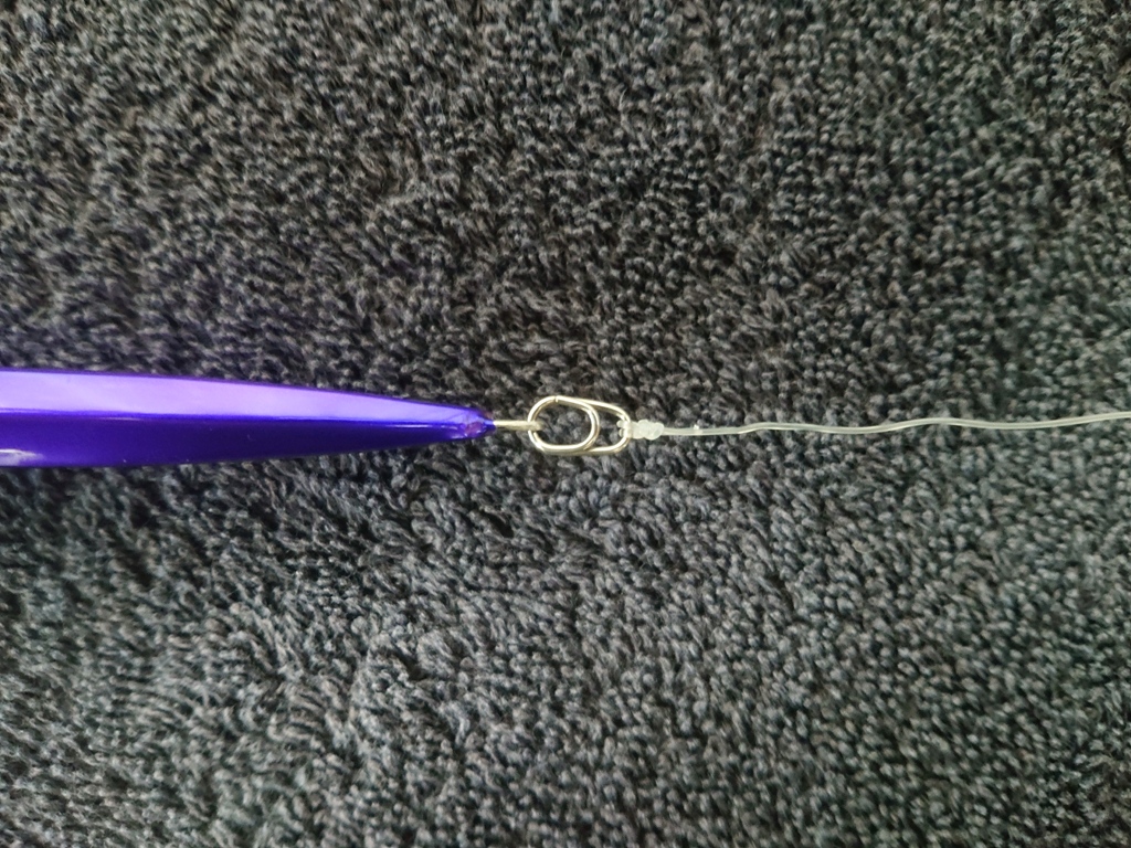 太いリーダーを金具へ結ぶ場合、ルアーフィッシングでよく使用されている「クリンチノット」で結んでしまうと解けやすくなってしまいます。その為、太いリーダーの結び方は「編込み結び」がオススメです。